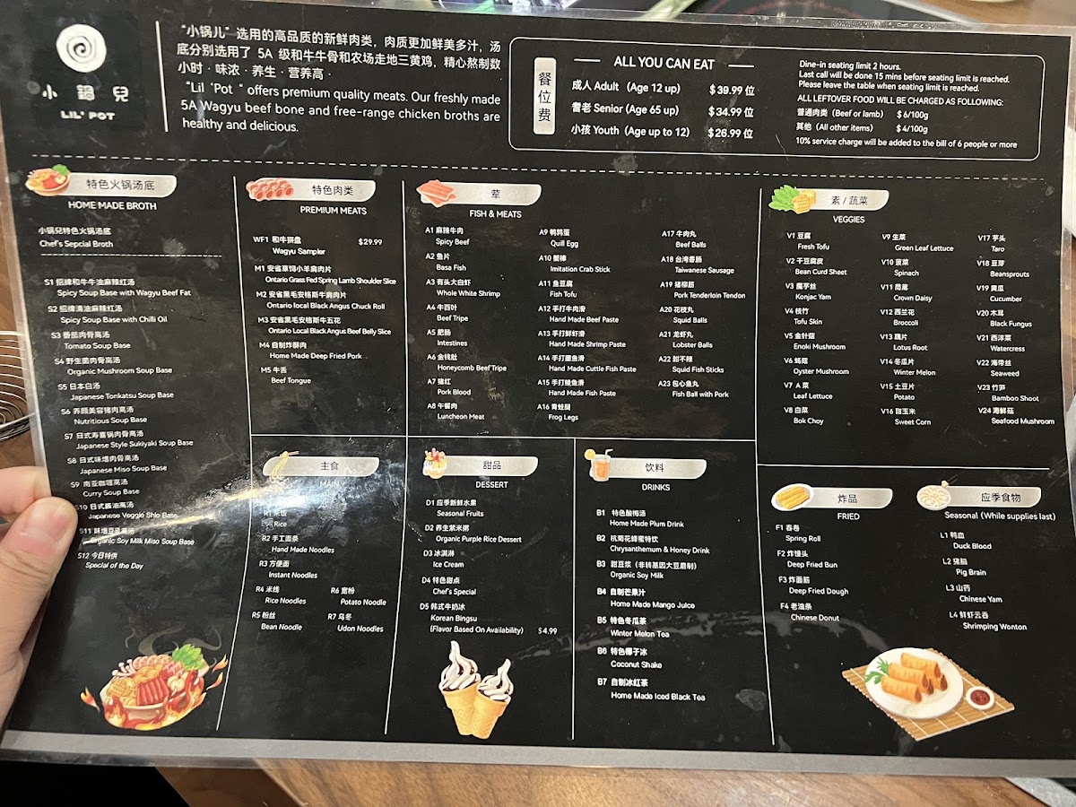 Jennifer Shen, a hot pot aficionado from Richmond, Vancouver, boldly states that Lil' Pot serves up the best hot pot she's ever had, underscoring the quality of ingredients, especially their wagyu beef, which has customers raving about its richness. The owner’s personal touch in explaining the menu items and dedication to your dining enjoyment has also garnered praise from patrons like Maddie Lee, who appreciates the attention to detail.